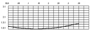 Wind loading: 3 Sq. ft. (maximum 80 mph) Weight: 16 lbs. Maximum element length: 35’ 4” Turning radius: 17.5’ Boom Length: 7.125’ Boom diameter: 1.5” Feedpoint Imp: 50 Ohm unbal. Feedpoint: UHF conn. Free space gain: =>8 dBi F/B ratio: =>25 dB